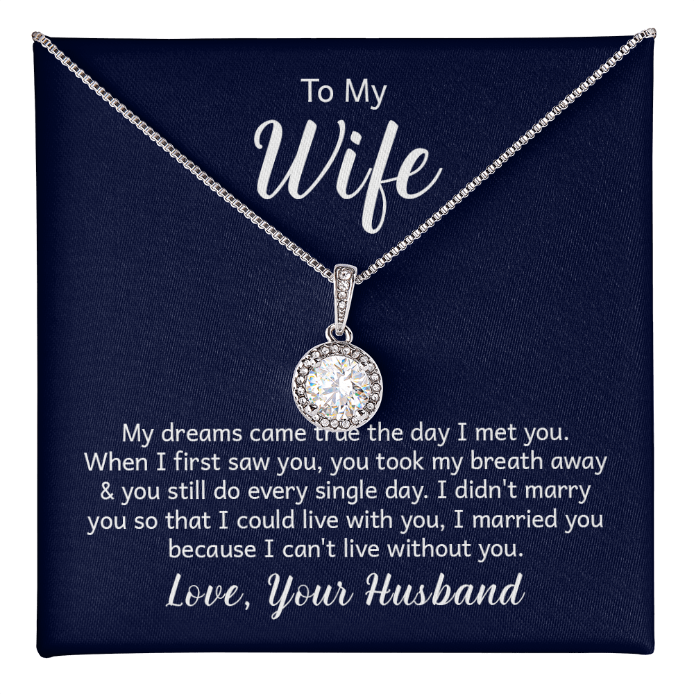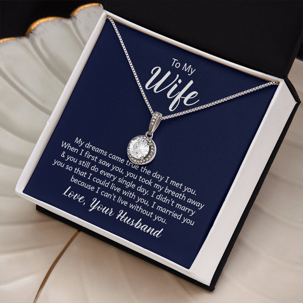 My dreams came true the day I met you. When I first saw you, you took my breath away & you still do every single day. I didn't marry you so I could live with you, I married you because I can't live without you. Love, Your Husband